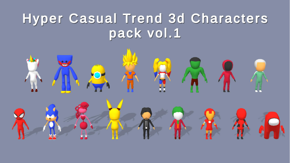 Introducing the Hyper Casual Trend 3D Characters Pack Vol. 1 Asset Pack for Unity! This exciting collection includes some of the most popular and in-demand characters, making it the perfect addition to your game development toolkit.